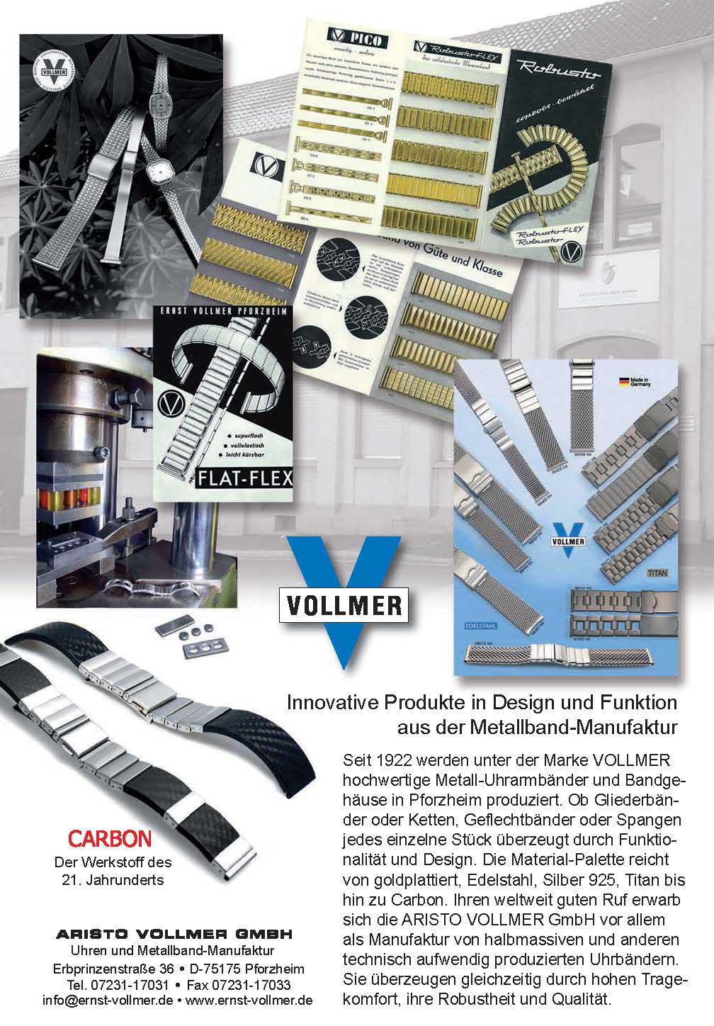 Beim Rundgang durch die Produktionsbereiche zeigte sich das Stadtoberhaupt beeindruckt von der Fertigungstiefe und der Leistungsfähigkeit der Maschinen, die teilweise schon seit Jahrzehnten mit höchster Präzision bei der Herstellung von Uhren und Bändern zum Einsatz kommen. 1922 hat die Firma, damals noch unter dem Namen Adam & Vollmer, im kleinen Rahmen mit der Produktion von Goldwaren in Birkenfeld begonnen. Seit 2005 firmiert das Unternehmen unter dem Namen Aristo Vollmer GmbH und vereint damit die ehemalige Uhrband-Manufaktur Ernst Vollmer mit der Aristo Watch GmbH.